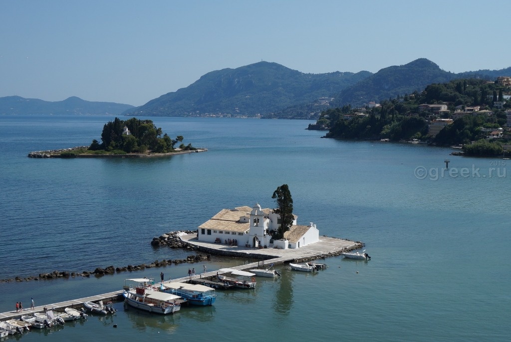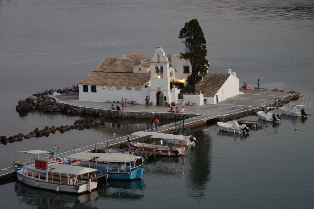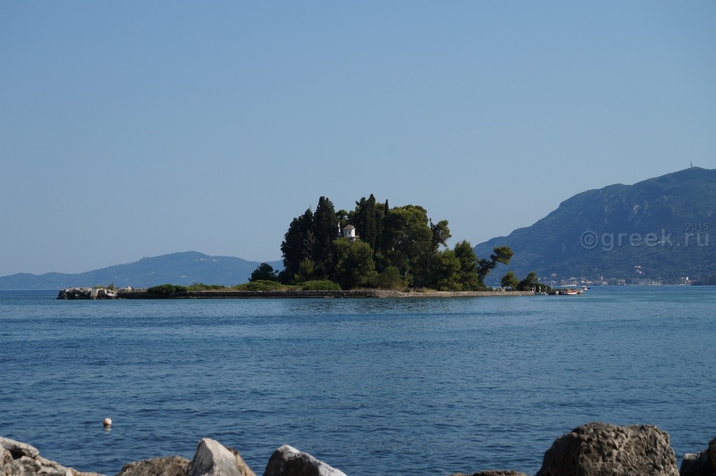 А еще из Канони можно на лодочке сплавать на Мышиный остров – Понтикониси.