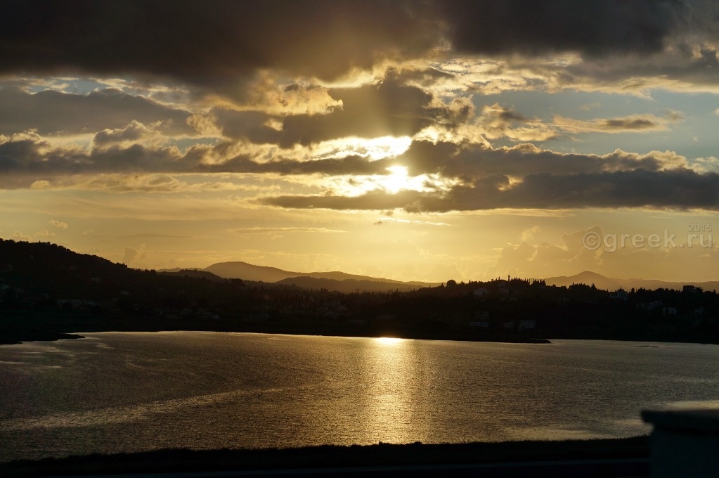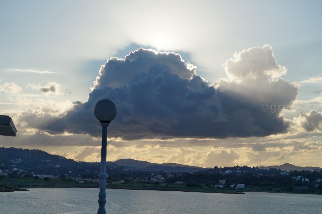 В один из дней мы застали редкое для июля в Греции явление - дождь. Мы сидели в кафе в Канони и наблюдали, как собираются тучи.