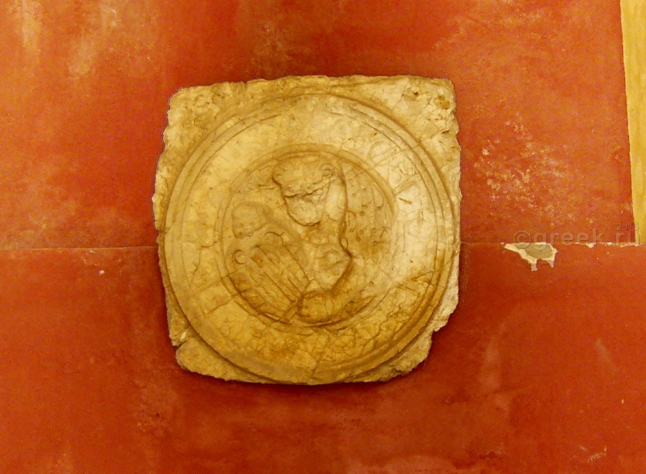 Недалеко от входа в нишах размещены фрагменты барельефа и прочие памятники старины.