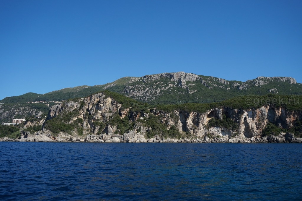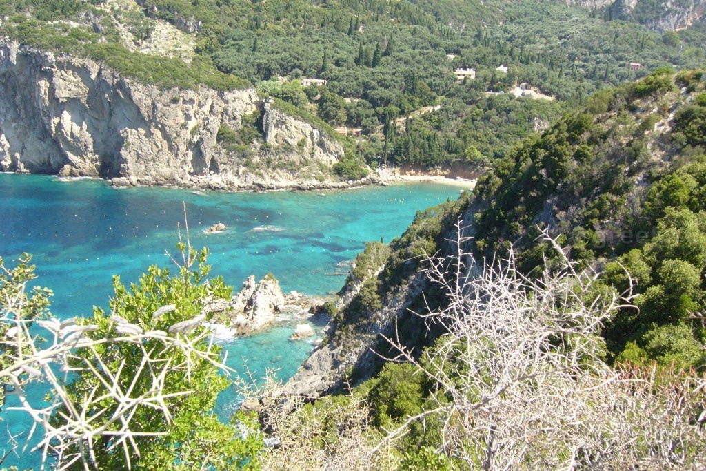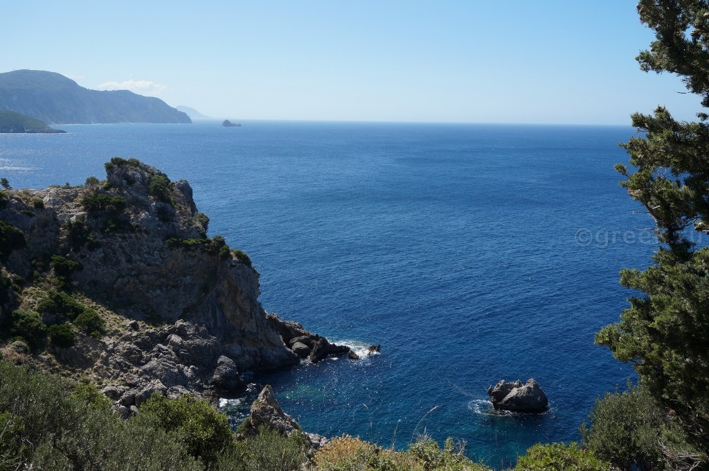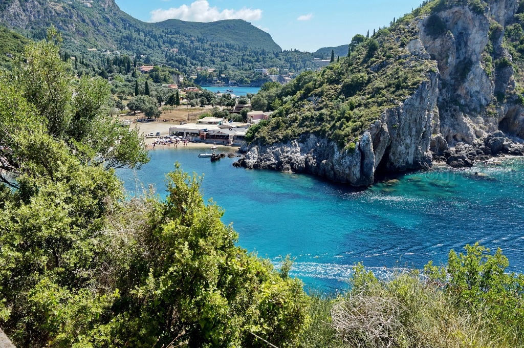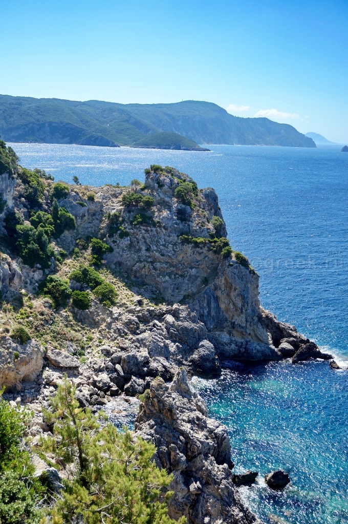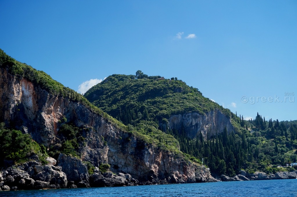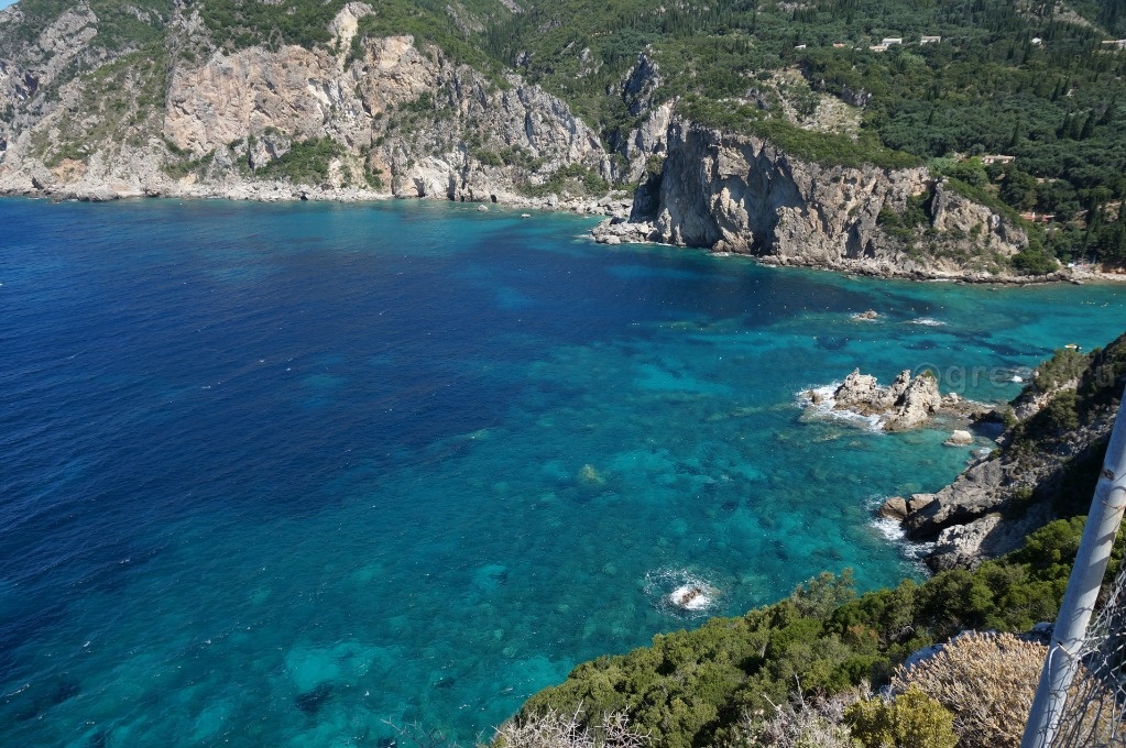 Виды на небольшие пляжи Палеокастрицы с дороги к монастырю.