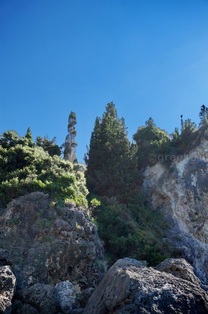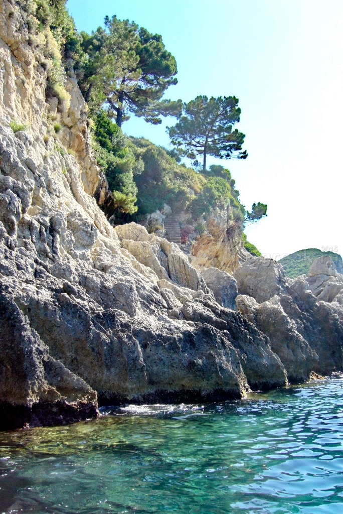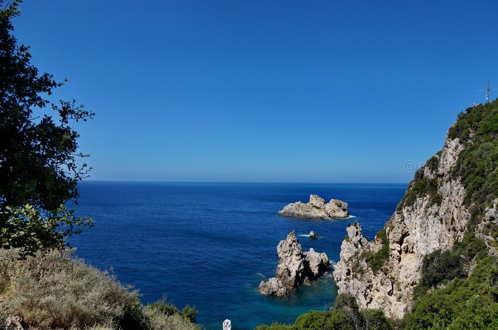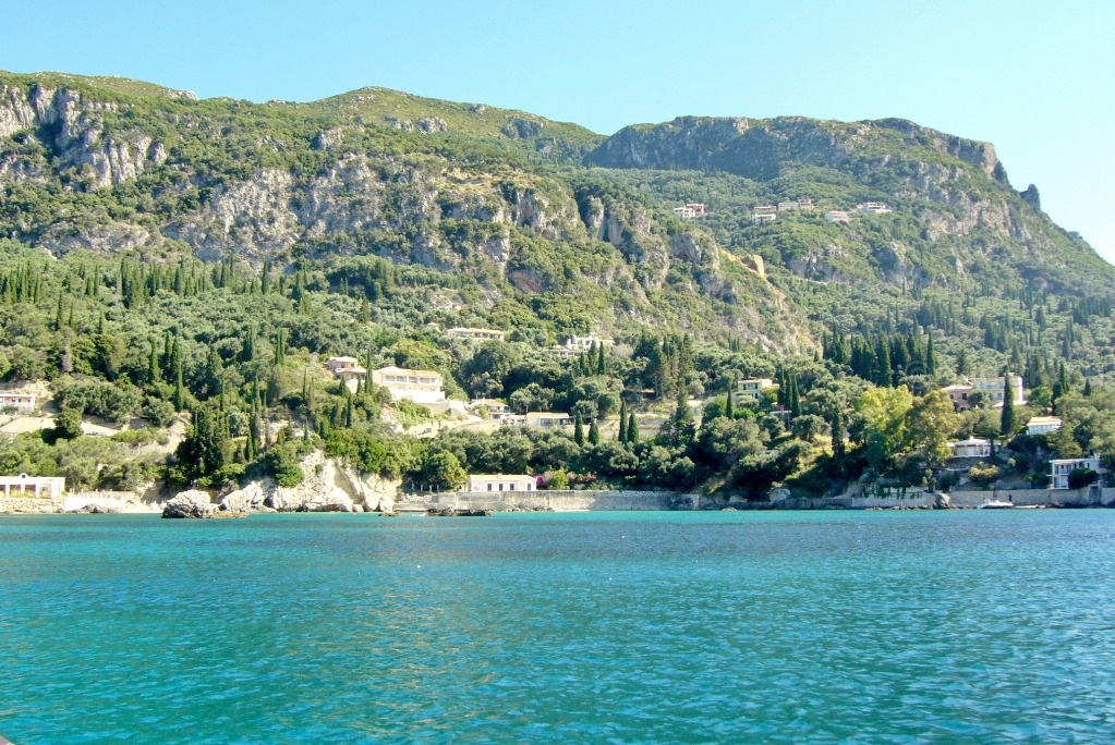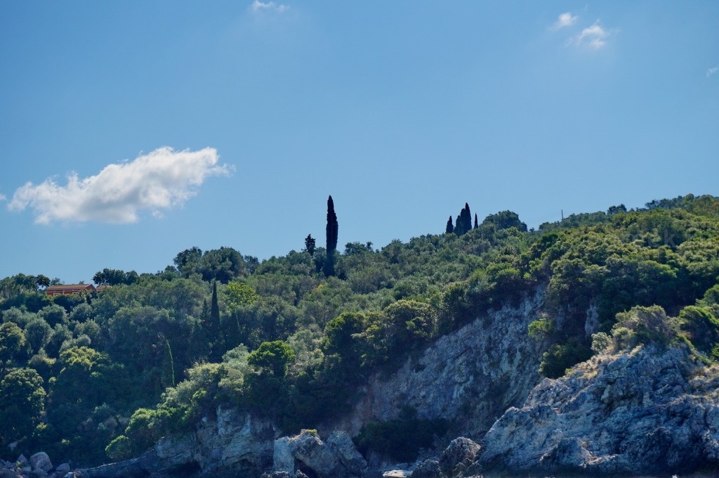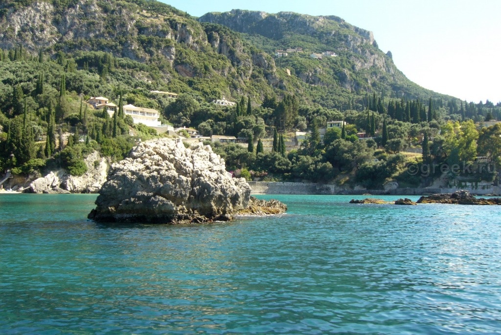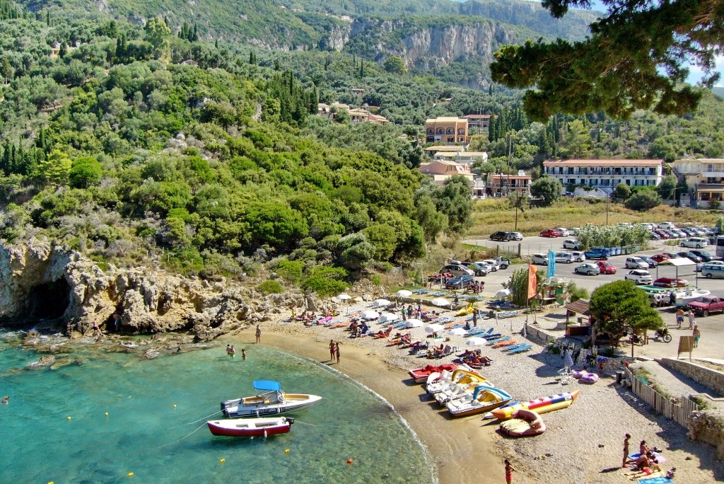 Виды на небольшие пляжи Палеокастрицы с дороги к монастырю.