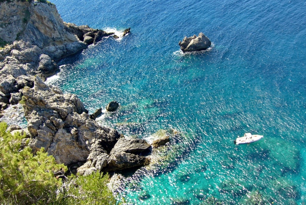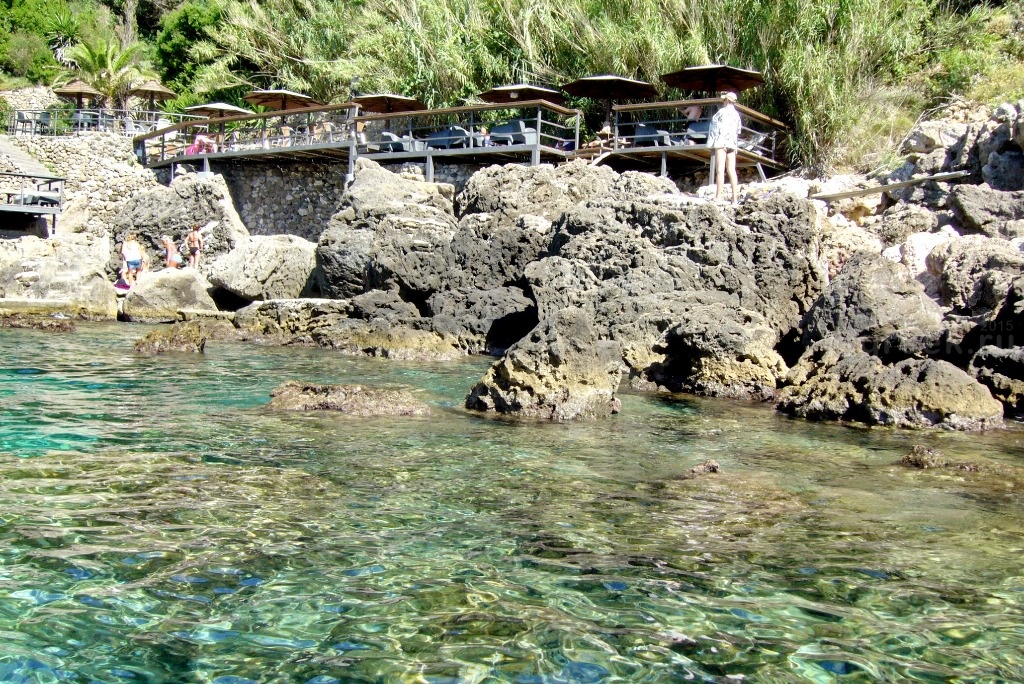 прямо напротив причала, откуда отправляются лодки в путешествие по гротам и на пляж Ровинья. Над причалом висит огромный плакат, так что мимо точно не пройдете. Стоит экскурсия 10 евро, если только прогулка по гротам, и 15 евро – если с высадкой на пляже. Уехать можно с любой другой лодкой. Рулевой лодки, он же экскурсовод (рассказывает на английском, все понятно, в основном, мифы и легенды) при высадке пассажиров на пляже Ровинья всех тщательно переписывает: откуда приехали, как зовут, сколько человек, чтобы никого случайно не оставить ночевать на диком пляже. Прогулка на лодке очень приятная, красота такая, что глаз не оторвать, хочется все это фотографировать по сто раз.