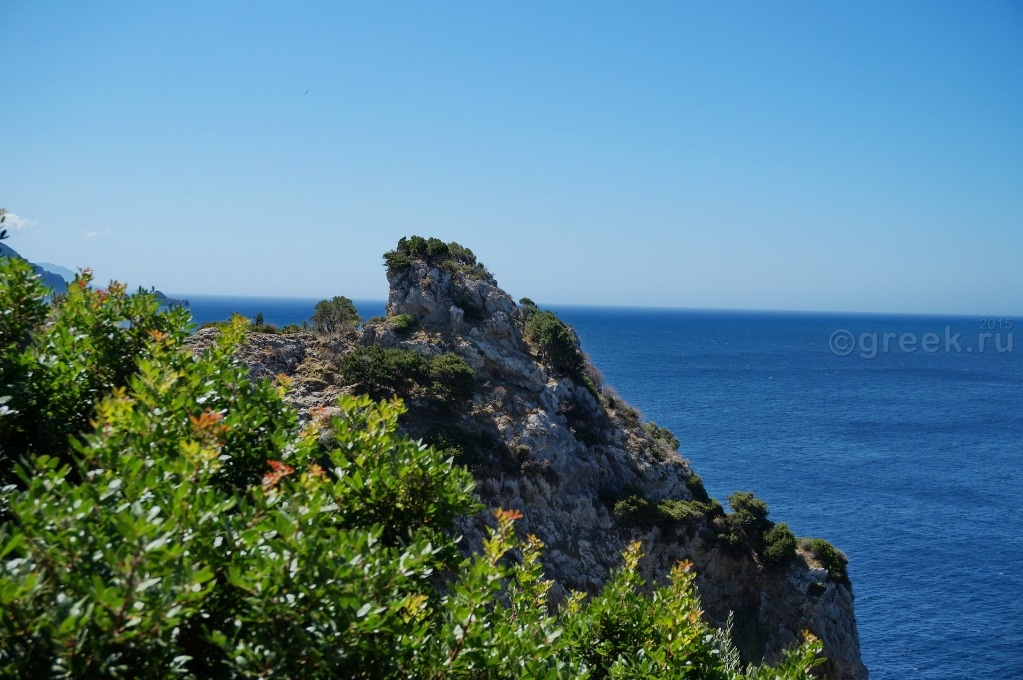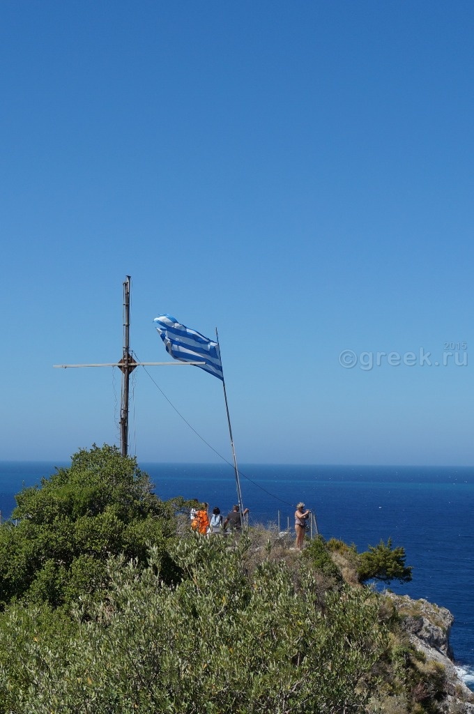 но не торопясь, по горной тропинке, мы легко достигли площадки с флагом Греции, откуда весь район хорошо просматривался.