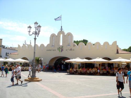 одной стороны и площадью в типично греческом стиле с кафенио и тавернами в