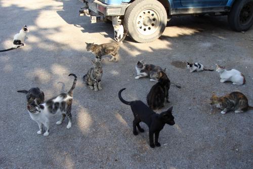 Есть Главная дорога, идущая из Кардáмены в сторону столицы и в противоположную в Кефалос. Мы сделали так. Посетили: Кефалос, полюбовались на островок Св. Стефана, Парадайс бич (цены там за лежачки и зонтик 10 евро!), посмотрели на пузырьки в Бабл бич. Заехали в Плаку, покормили гуляющих павлинов. Потом посетили развалины итальянской крепости (Castro). Искупались в море и посмотрели солёное (пересохшее сейчас) озеро в Тигаки. Затем в деревеньку Зиа (Зья) – там сувенирные магазины, красивого заката не дождались. Поехали в Асклепийон (вход платный), на парковке встретили стаю голодных кошек, тут-то нам и пригодилась ветчина, предусмотрительно взятая из ресторана