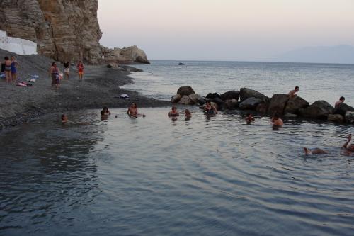 А потом в Кос – постояли под платаном Гиппократа и посетили крепость (вход платный). Времени оставалось мало, и мы поехали в Термы. Совет: можно спуститься вниз на авто по грунтовой дороге (вечером внизу мало машин, как днём не знаю), т.к. подниматься пешком долго и нудно. Там есть какое-то кафе – вечерами не работает. Да и вообще всё немного запущено – мусор вокруг, туалетов нет. Но есть убогонькая переодевалочка, поменять одежду можно. Сильно пахнет сероводородом, вода ближе к источнику очень горячая. Нам понравилось поотмокать после дневных путешествий.