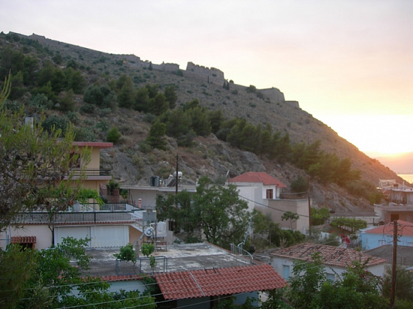 Едем в первую столицу Греции. Наш отель у подножия крепости Паламиди, вид на крепость и море.