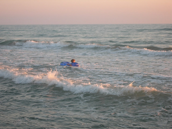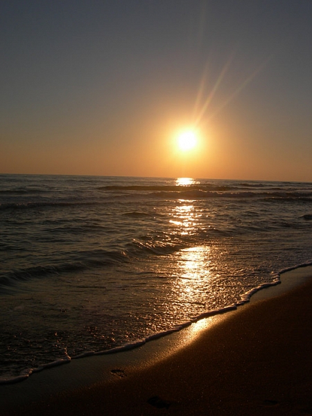 На носу вечер и мы рванули, напрямую, к гостинице.Наша "Олимпия" оказалась приятной во всех отношениях - хороший, двухсекционный номер с большим балконом.С балкона вид на горы, до моря метров 100. Пляж шикарный, с мелким песком и мы еще до заката успели покачаться на волнах.