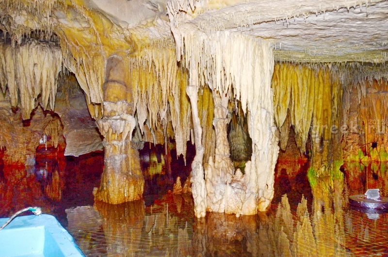 Перед посадкой на вас наденут спасжилет. Раньше говорят были ещё и каски, но я их не видел. Посадка происходит так: служащий, рассаживает людей по лодкам, соблюдая развесовку. Кто полегче, сажают спереди, очень тяжелых, по одному по центру сидения, остальные по 2 человека. Полчаса нас катали в лодке, по подземным рекам, где глубина воды от 2 до 20 м, с хорошо продуманным и красивым освещением, по забитыми сталактитами и сталагмитами пещерам. Куда-то в бок, и во тьму, отходили различные протоки и терялись во тьме. Мы, то вплывали в большие гроты, то еле-еле протискивались в узкие щели, где расстояния до края бортов составляли считанные сантиметры. Я до сих пор восхищаюсь мастерством лодочников.