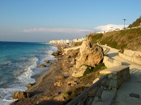 Местность очень горная, пляжи каменистые. Я пыталась дойти до ближайшего пляжа. Но оказалось, что все они неблизко, и к ним нужно еще в горку карабкаться. Шла минут 40, после чего, увидев крохотный ресторан-бар-пляж (в одном флаконе) с маленьким более или менее нормальным заходом в море, решила здесь же и искупаться. А загорать — на камни-валуны подалась.