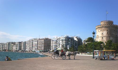 Она не белая – серовато-молочная, странная своей неприступностью и никчемностью в этом городе. Как будто в детской книжке про рыцарей была картинка замка, обнесенного мощной стеной с бойницами и огромными, обитыми кованым железом воротами. А по обе стороны от ворот возвышались две башни с зубчатым верхом. И старательный мальчик очень аккуратно вырезал ножницами одну из башен – скажем, левую, и приклеил ее на карту Салоник, забытую папой на столе. Так она и стоит там, напоминая огромную ладью с шахматной доски, почему-то оказавшуюся на краю набережной приморского городка. Красота и условность. Какая-то глупая романтика. Не слушайте меня – гид расскажет вам поучительную историю о значении этой башни для местных жителей в эпоху турецкого владычества, о ее символичном преображении в позапрошлом веке после освобождения Эллады, о многочисленных ступенях, музейной экспозиции и смотровой площадке. Он больше знает, а мое восприятие субъективно.