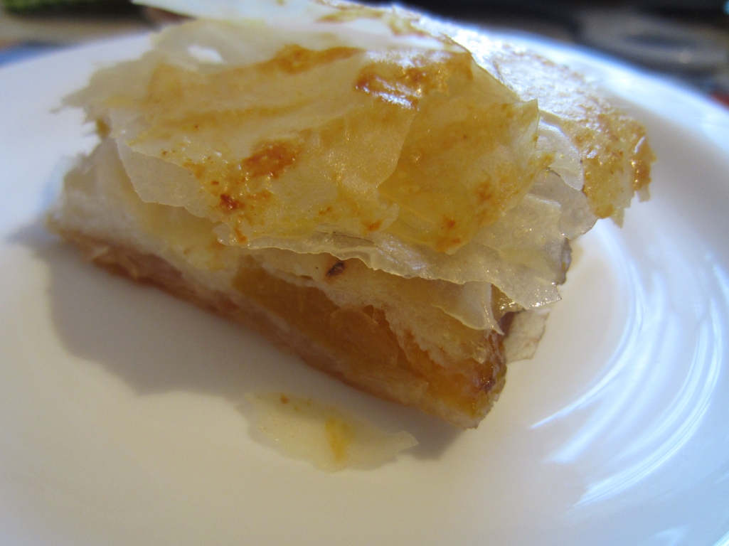 И вот тут начинается то самое главное отличие, которое позволяет добиться практически аутентичного (не люблю это модное слово, ну да ладно) результата! А именно: несколько слоев слоеного теста филло.