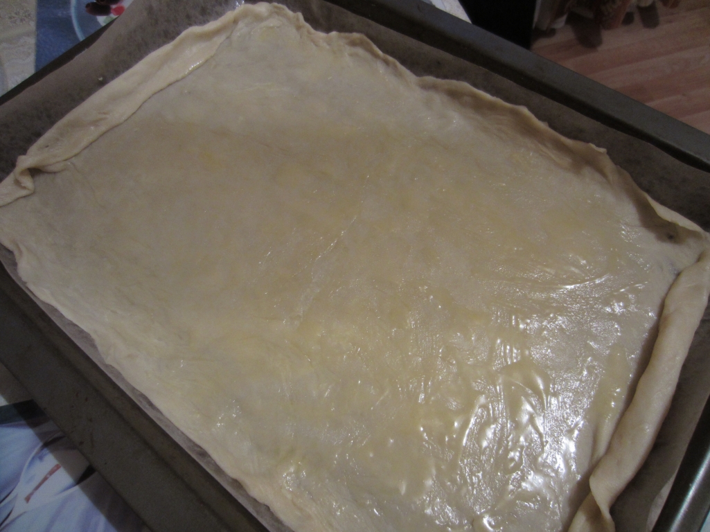 1. Не получилось раскатать очень тонко, приготовленное тесто было толстоватым, но в пределах разумного.
