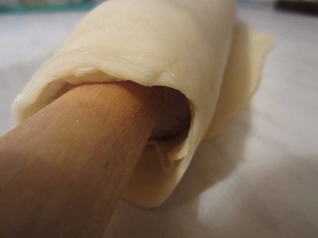 NB! При работе с таким тестом нельзя его надолго оставлять на воздухе: сохнет - прикрывать слегка влажной марлей (из личного опыта: от мокрого полотенца оно превратится в кашу).