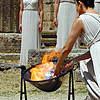 Церемония состоялась на развалинах святилища в Древней Олимпии, на полуострове Пелопоннес. Огонь от солнца удалось зажечь почти сразу же с помощью традиционного параболического зеркала.