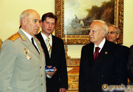 …Именные памятные награды Греческой Республики вручаются президентом Каролосом Папульясом нашим славным ветеранам.