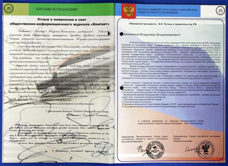 | После возвращения из Брюсселя 17-11-06 было передано первое обращение председателю Ассоциации греческих общественных объединений России (АГООР) И.И.Саввиди. |