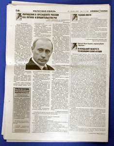 В начале нашего обращения хотелось бы поздравить Вас и правительство Российской Федерации с большими успехами за последние годы! Отрадно отметить, что с Вашим приходом к власти в России достигнута политическая стабильность, активно развивается экономика, повышается уровень жизни населения. Решаются многие наболевшие вопросы, в том числе: проблемы бывшего СССР и нынешнего СНГ; внутренние кризисные ситуации в России; вопросы внешней политики РФ с ЕС и с другими государствами мира; проблемы стратегического характера. Результатом Вашей деятельности стало возвращение России на мировую арену в статусе сильной, но мирной державы!