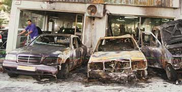 С наступлением ночи на понедельник новой атаке подверглись отделения банков, а также выставки-продажи дорогих автомобилей.