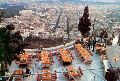 Не упустите возможность полюбоваться панорамным, простирающимся вплоть до моря видом города и величественной картиной Акрополя. Ликавиттос всегда был излюбленным местом для людей с романтической натурой. И дело не только в виде, открывающемся с его вершины, но и в пейзаже горы - сосны и кипарисы, маленькие деревянные скамейки, узкие тропинки... Здесь же находится театр под открытым небом, где в летние месяцы проводятся концерты и представления, пользующиеся большим успехом у любителей музыки и театра. Если вам и этого мало, возможно вас заинтересует небольшой белый храм Святого Георгия. В древности на Ликавиттосе был густой лес, а на вершине находилось святилище Зевса. При освобождении Афин от турок на горе не было ни одного дерева. Восстановление флоры горы было начато в 1880 и завершено около 1915 года. В старые времена Ликавиттос покрыт соснами и кипарисами, а воздух напоен душистым ароматом сосновой смолы.