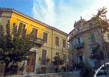 На улице Панепистимиу (Университета) находятся три здания, строительство которых началось примерно в одно и то же время, в десятилетия, последовавшие за Национальным освобождением Греции. Здания выполнены по проектам братьев Хансен, двух знаменитых датских архитекторов, находившихся в то время в Греции.