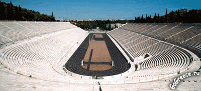 Напротив Национального сада находится примечательное сооружение современных Афин - беломраморный стадион, имеющий форму вытянутой подковы и являющийся точной реконструкцией античного стадиона, сооруженного при Героде Аттике. Название стадиона происходит от его первоначального назначения: в древние времена здесь проводились спортивные состязания во время празднования Панафиней. Стадион, который мы видим сегодня, был построен в 1869-1870 годы для первых Олимпийских игр, возобновивших в 1896 году древнюю эллинскую традицию.