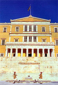 Выходящее на площадь Синтагма здание парламента было построено для короля Греции Оттона и его жены Амалии. Строительство дворца продолжалось шесть лет, с 1836 по 1842 год. Здесь же поселился второй король Греции Георгий, но два больших пожара, происшедших за время его царствования, причинили такой ущерб, что здание было признано непригодным для королевской резиденции. В 1924 году греческое правительство приняло решение, чтобы здесь расположился парламент. Работы по восстановлению здания были завершены в 1934 году. Внутренние помещения были полностью реконструированы архитектором А. Криезисом. Памятник Неизвестному солдату, находяйщися перед фасадом здания, был сооружен в 1929-1930 годах. По большим праздникам здесь происходит возложение венков греческими и иностранными официальными лицами. Круглосуточный караул у памятника несут солдаты особого подразделения греческой армии, так называемые эвзоны. Смена караула происходит каждый час и, безусловно, представляет собой колоритное зрелище. В открытой для посетителей части здания Парламента вы можете увидеть драгоценные национальные реликвии, как, например, первую греческую конституцию, а также ряд замечательных произведений живописи. Советуем также посетить обширную библиотеку Парламента.