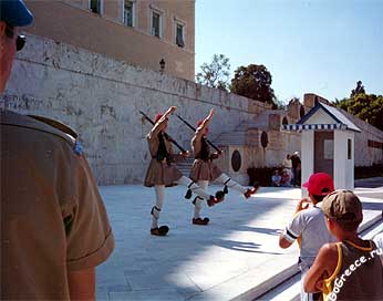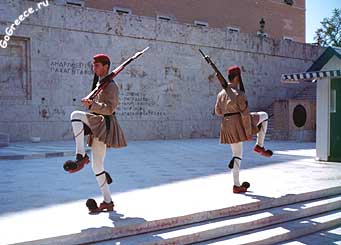 Справляясь о том, как пройти к тому или иному месту в Афинах, вы часто будете слышать название Синтагма. Ничего удивительного: вместе с площадью Омония это главный ориентир в центре города. Плака, Акрополь, Афинский кафедральный собор (Митрополи), Национальный сад и византийская церковь Капникарея, одна из самых оживленных торговых улиц Афин - Эрму (Гермеса), а также площадь Колонаки - все это расположено неподалеку от площади Синтагма. На площади стоит здание Греческого Парламента, а перед ним - памятник Неизвестному солдату, где каждый час происходить смена караула, которую интересно посмотреть. Синтагма - это центр жизни города. В окружающих площадь зданиях расположены гостиницы, греческие и иностранные банки, министерства и офисы авиакомпаний. Здесь же находятся некоторые из наиболее известных баров и ночных клубов, действующих только в зимний период. Движение на этой площади не замирает ни на минуту. В ее киосках вы найдете все, что угодно - от аспирина до греческих сувениров и всех крупных зарубежных газет и журналов.