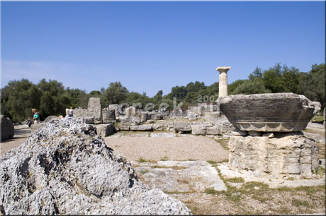 Приятно прогуляться по храму Зевса и представить, где находилось одно из Семи чудес света - знаменитая статуя Зевса работы Фидия. Создал ее мастер, видимо, «в натуральную величину», в сидячем положении она превышала 12 метров. Статуя была изготовлена из золота, дерева и слоновой кости. Перед ней находился резервуар с оливковым маслом, и когда лучи солнца попадали на него, то их отблеск освещал бога, и он казался живым (такая маленькая греческая хитрость).